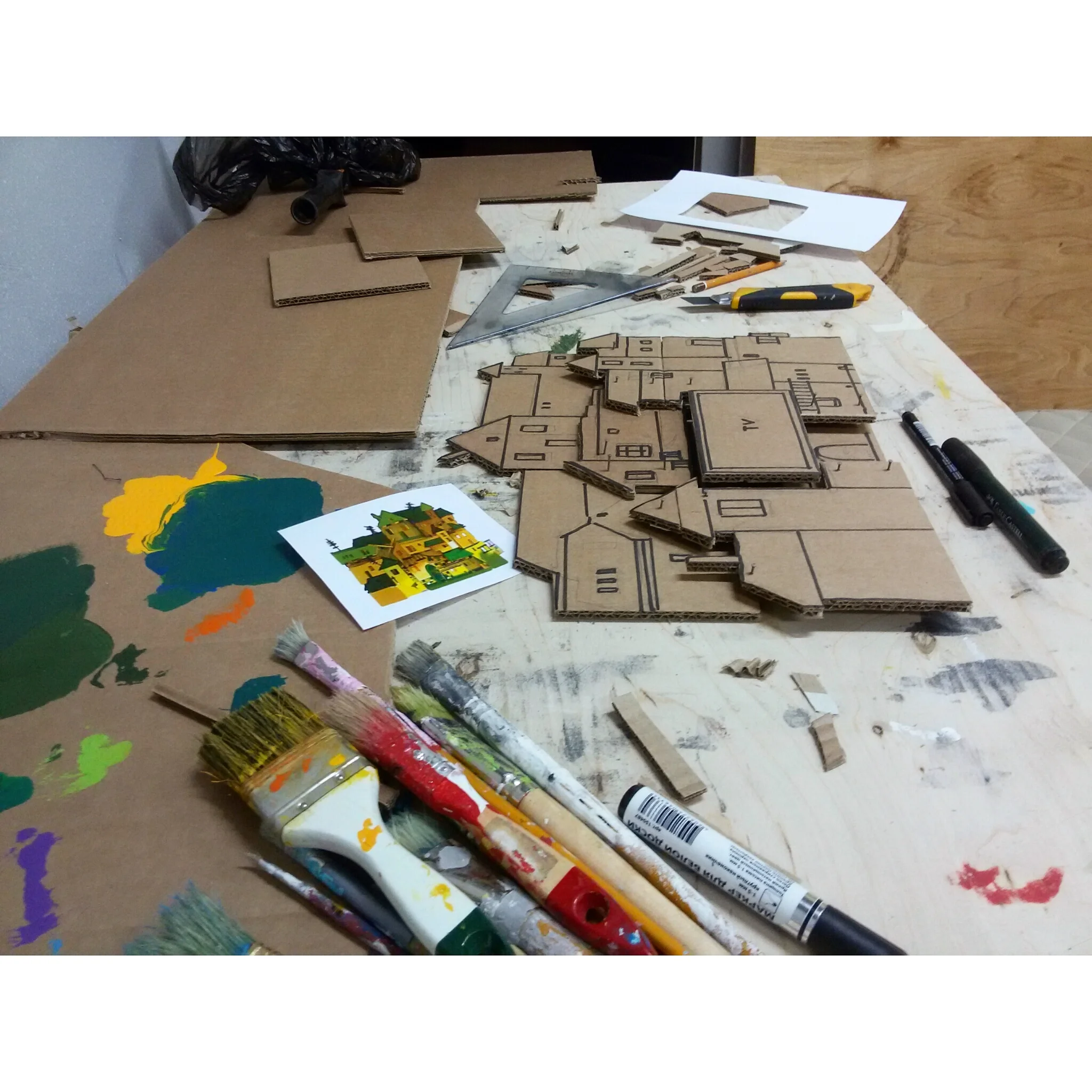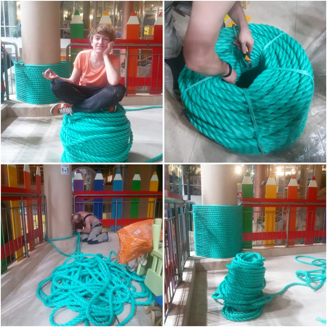 Исходя из таких особенностей помещения, где будут размещены наши декорации, мы с особой тщательностью подошли к подбору материалов для изготовления конструкций Игровой зоны для детей. В качестве основного элемента использовалась высококачественная бакелитовая фанера, которая раскрашивалась специальными красками, подобранными в соответствии с утверждённым проектом. Декорации покрывались несколькими слоями яхтного лака, как известно обладающим превосходным свойством защищать конструкции от агрессивной среды. Элементы декораций соединялись крепежом из нержавеющей стали, такой же материал использовался для закрепления всей конструкции на стене помещения. В качестве декоративной составляющей Игровой зоны для детей мы использовали полипропиленовый канат, который удачно вписался в дизайн Аквапарка.