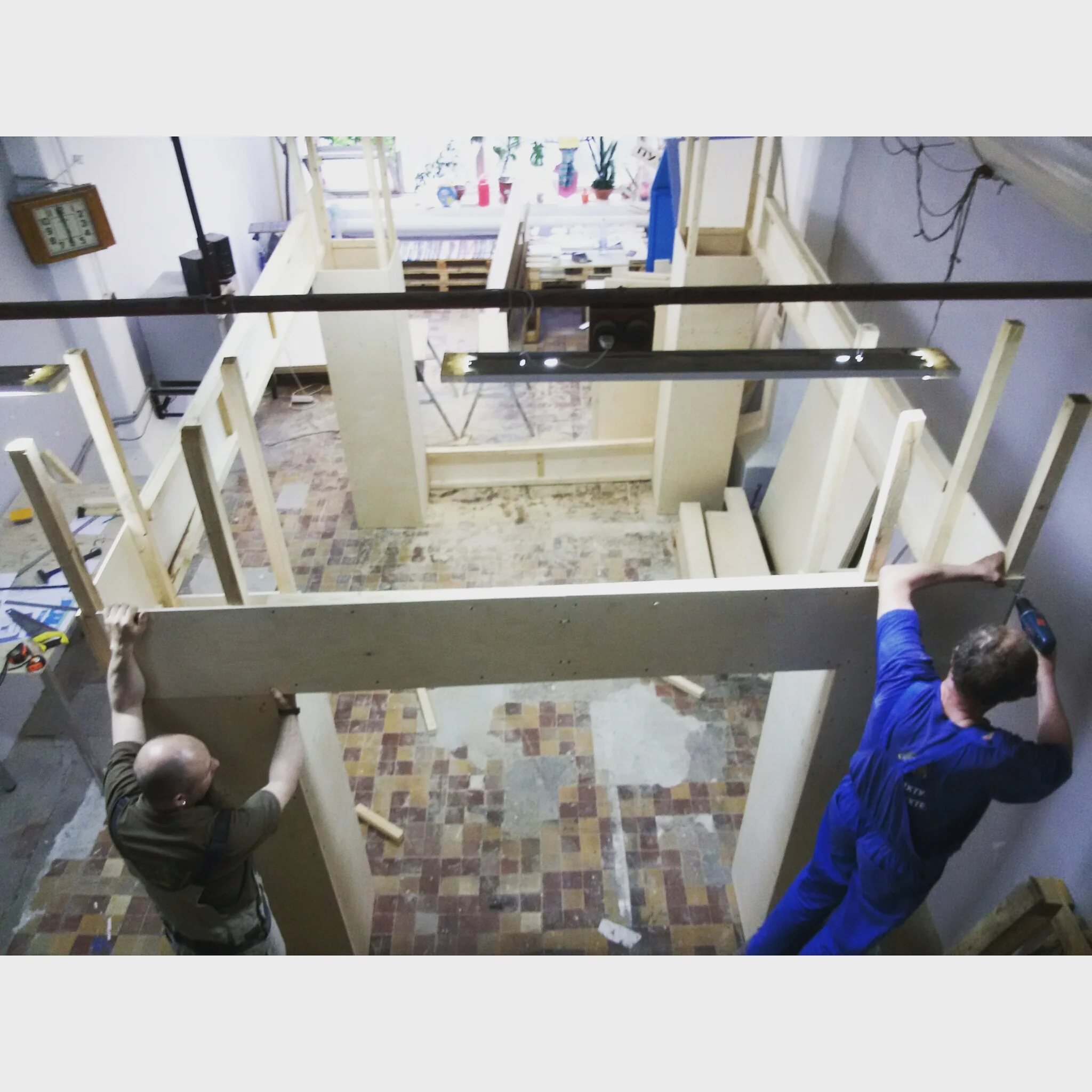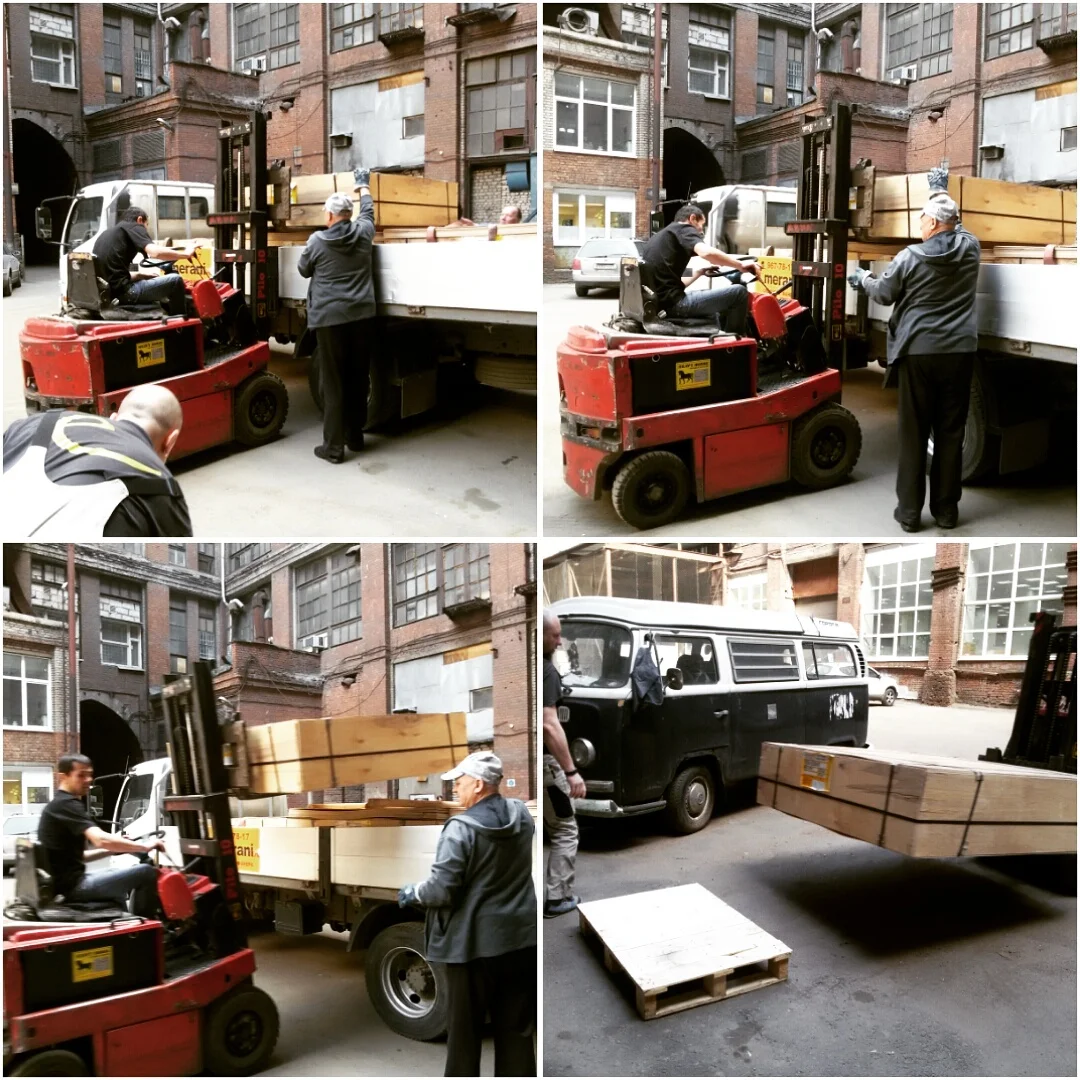 Разгрузка фанеры, на проект ушло около 2 кубов.