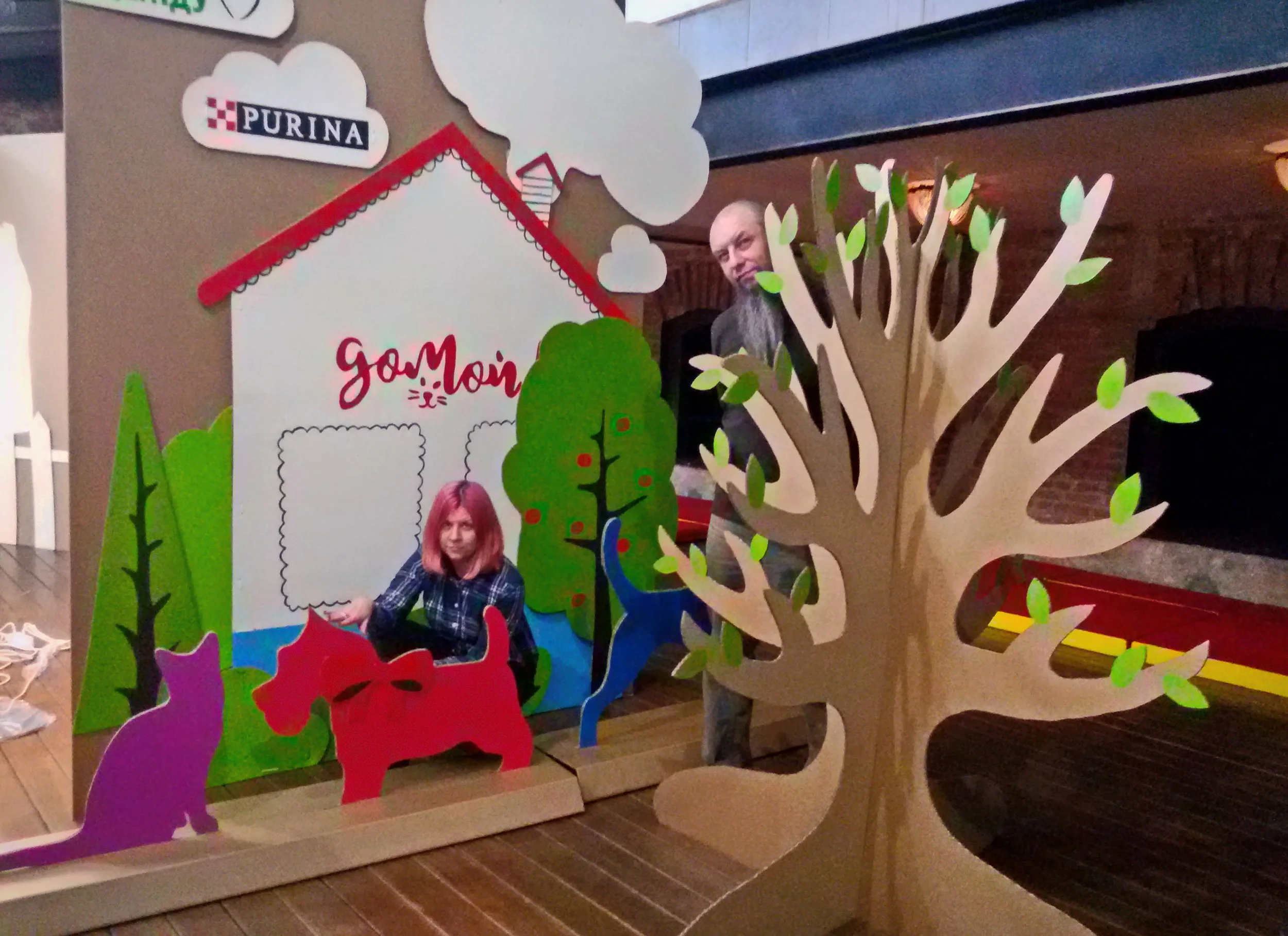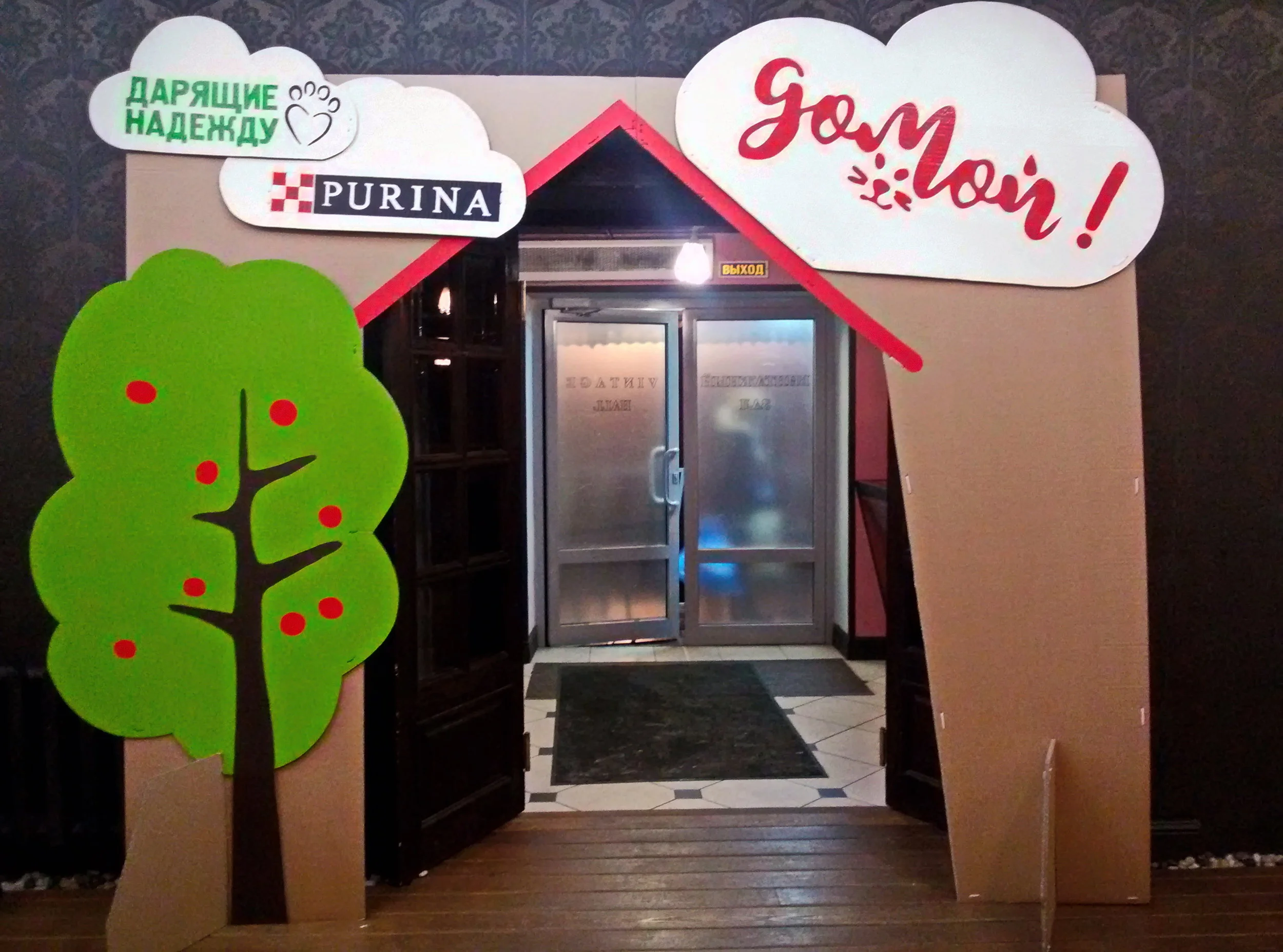 В середине октября нас пригласили придумать и построить декорации к мероприятию «ДоМой» проводимым Международным благотворительным фондом «Дарящие надежду» и компанией Purina по пристройству приютских животных, бездомных кошек и собак.