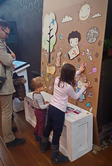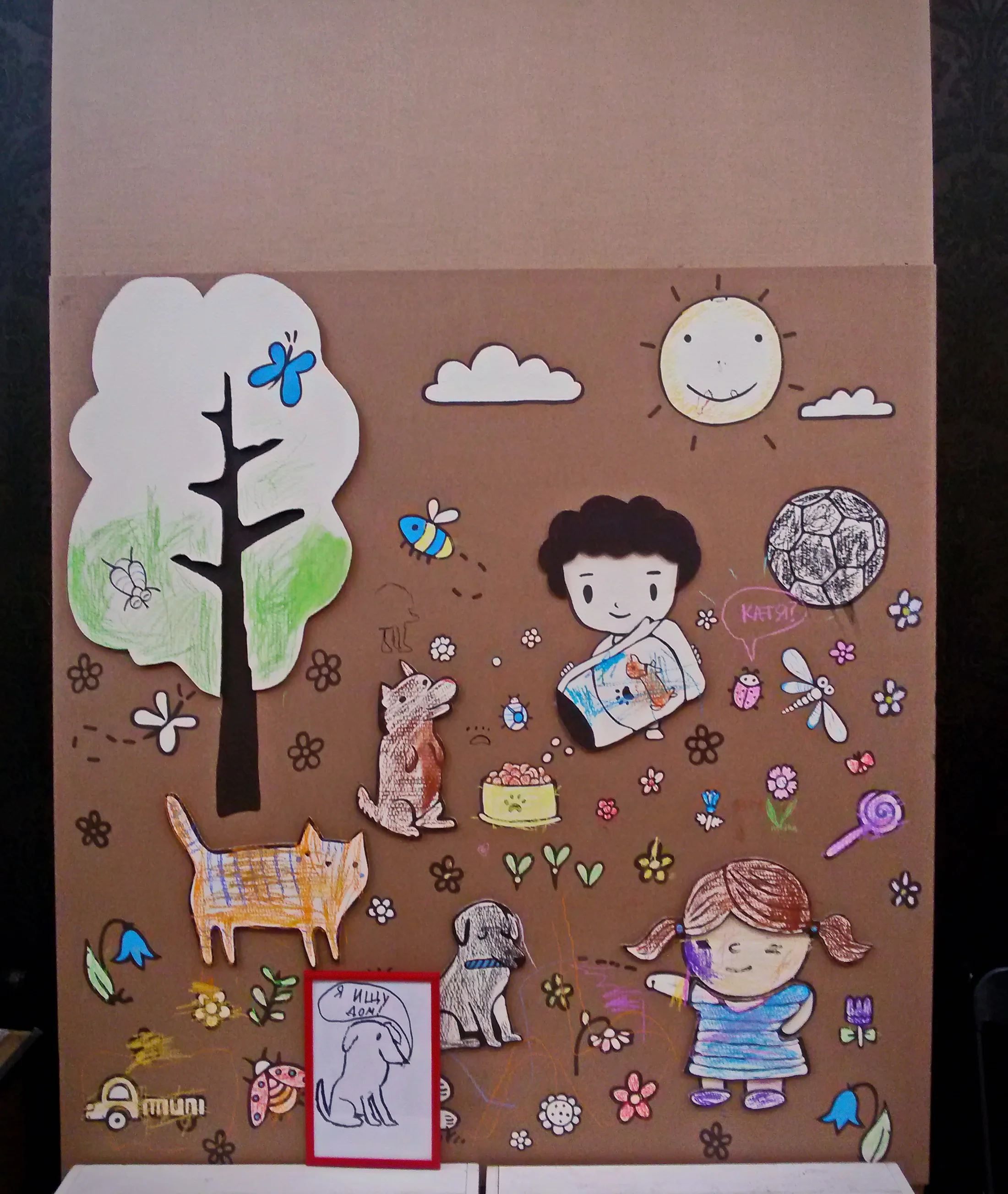 Для самых маленьких любителей животных в Мастерской был придуман стенд с возможностью раскрасить элементы декорации. Недолго мелки лежали невостребованными!