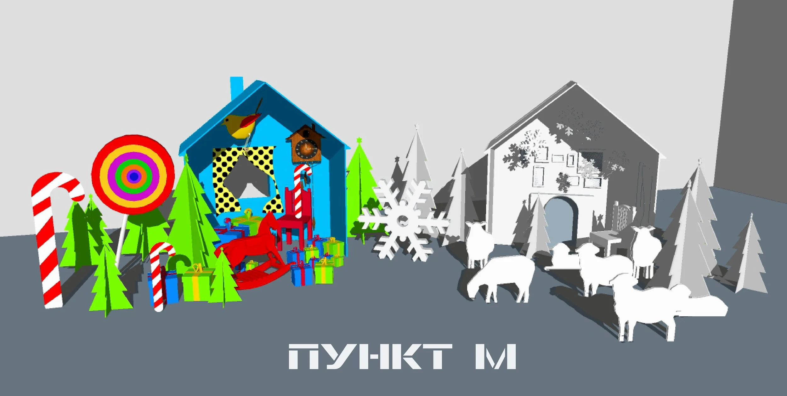 Мастерская "Пункт М" предлагает в аренду оригинальные декорации для проведения новогодних мероприятий. Декорации можно использовать в качестве оформления пространства или интерактивной фотозоны.