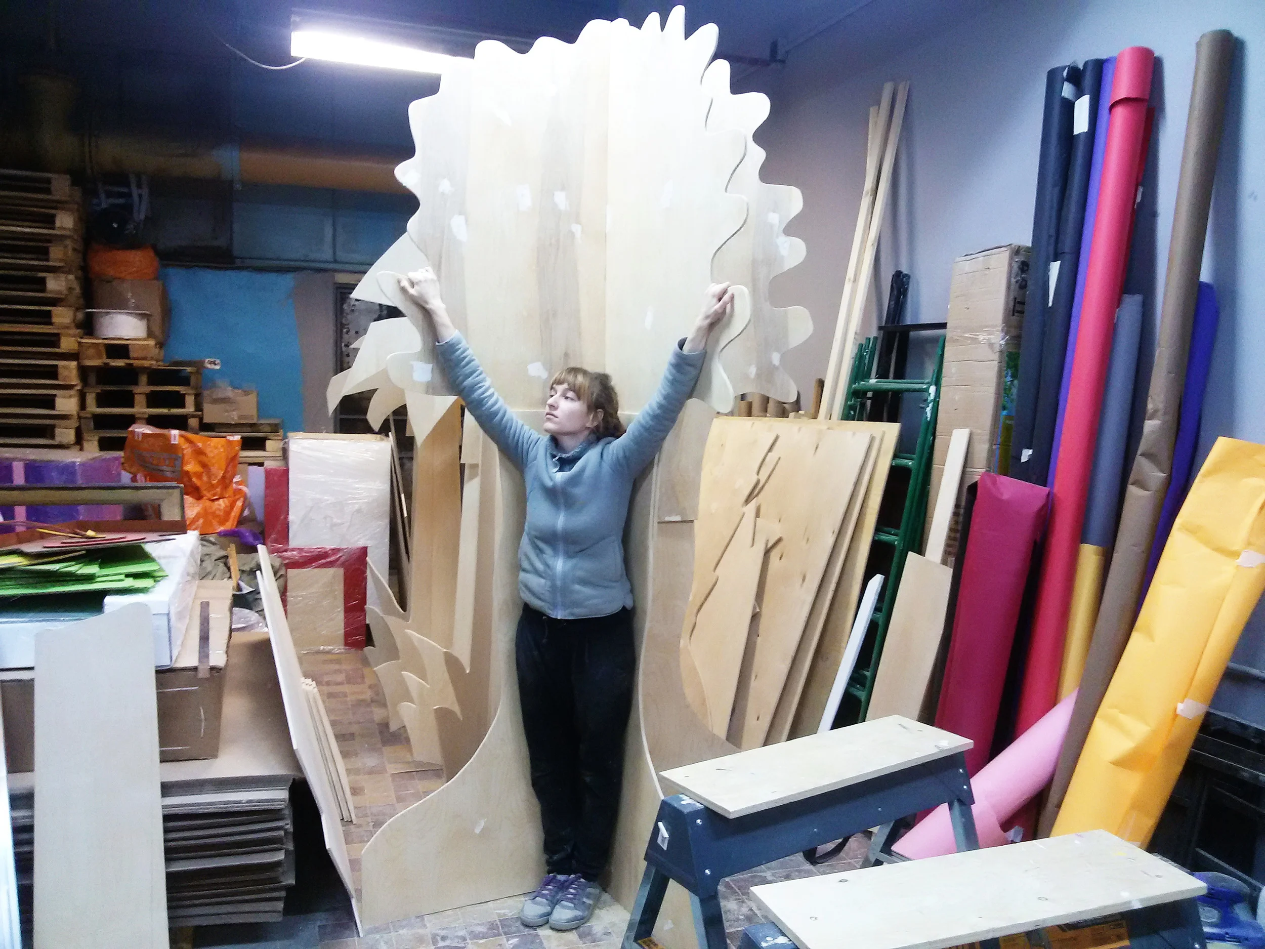Сложные формы элементов конструкции изготавливаются и раскрашиваются вручную в нашей мастерской, что гарантирует высокое качество декораций. Дерево, фанера, ткань, пластик, металл... Мы умеем работать с этими материалами. Хотите убедиться? Сделайте заказ на производство уличных декораций в мастерской "Пункт М".